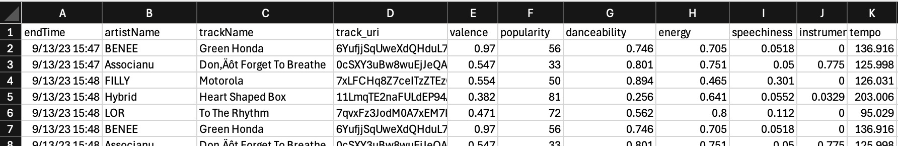 Merged 2818 Songs + Spotify Audio Features (‘valence, popularity, etc’)
